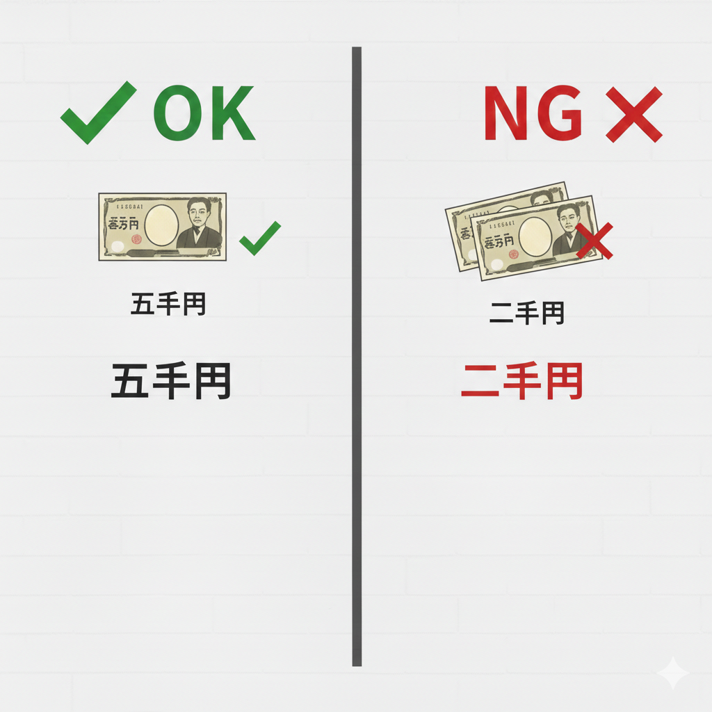 ◆新札・折り目・封の仕方で避けるべき失礼な例