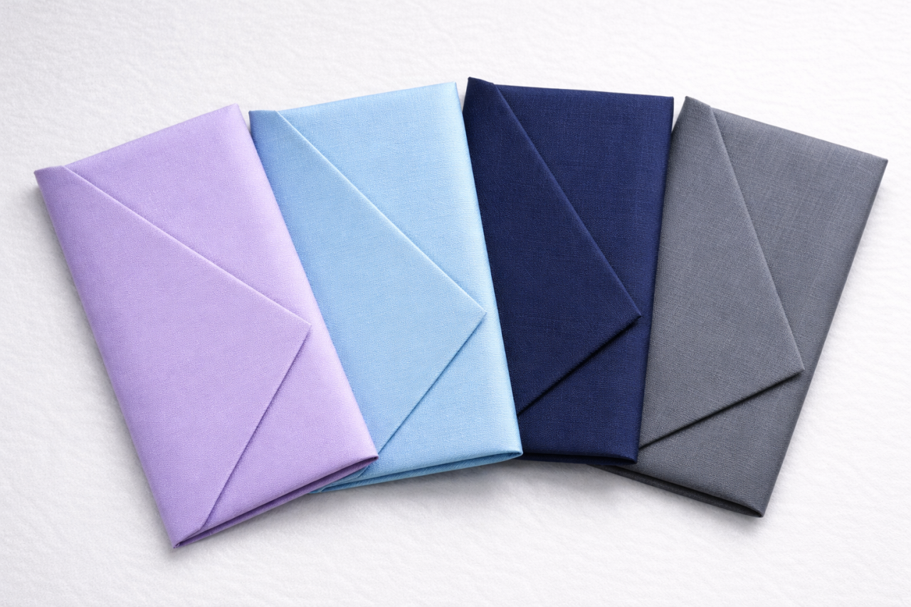 香典は「袱紗(ふくさ)」に包んで持参するのが鉄則です。弔事で使えるのは、紫、紺、深緑、グレーなどの寒色系です。特に紫は慶弔両用として使えるため、一色持っておくと非常に便利です。包み方は、袱紗を広げて中央よりやや右に香典袋を置き、「右→下→上→左」の順にたたみます。最後、左側の折り返しが一番上にくる「左開き」にするのが弔事のルールです。慶事(右開き)と逆になるため、ここが一番の注意点です。