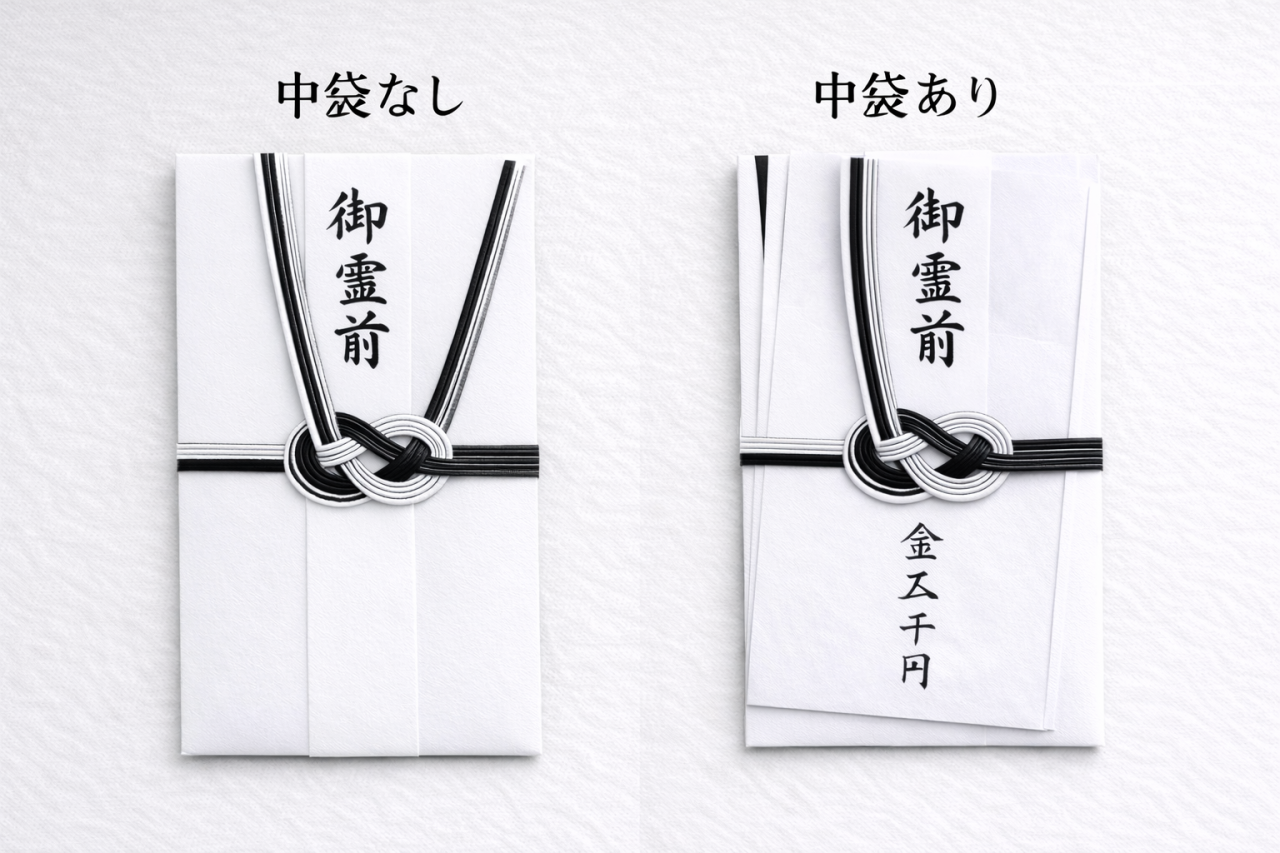 市販の香典袋には、現金を直接入れる「中袋(中包み)」が付属しているタイプと、一重の封筒タイプがあります。一般的には中袋がある方が丁寧な形式とされますが、地域によっては「不幸が重ならないように」という意味を込めて、あえて二重になる中袋を避ける(中袋なし)という慣習もあります。基本的には購入した袋のセット内容に従えば問題ありませんが、高額(3万円以上)を包む場合は、中袋付きのしっかりした格の袋を選ぶのがマナーです。