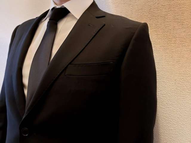 ワイシャツ、黒スーツ、ネクタイ、黒靴下、黒の革靴。これらが最低限必要な服装です。ユニクロではこれらすべてを揃えることが可能です。